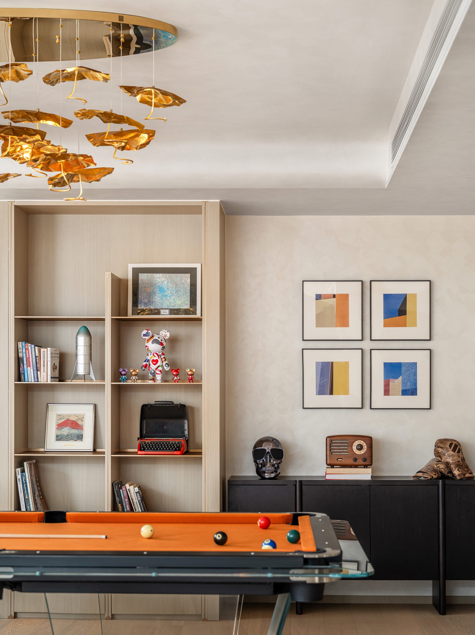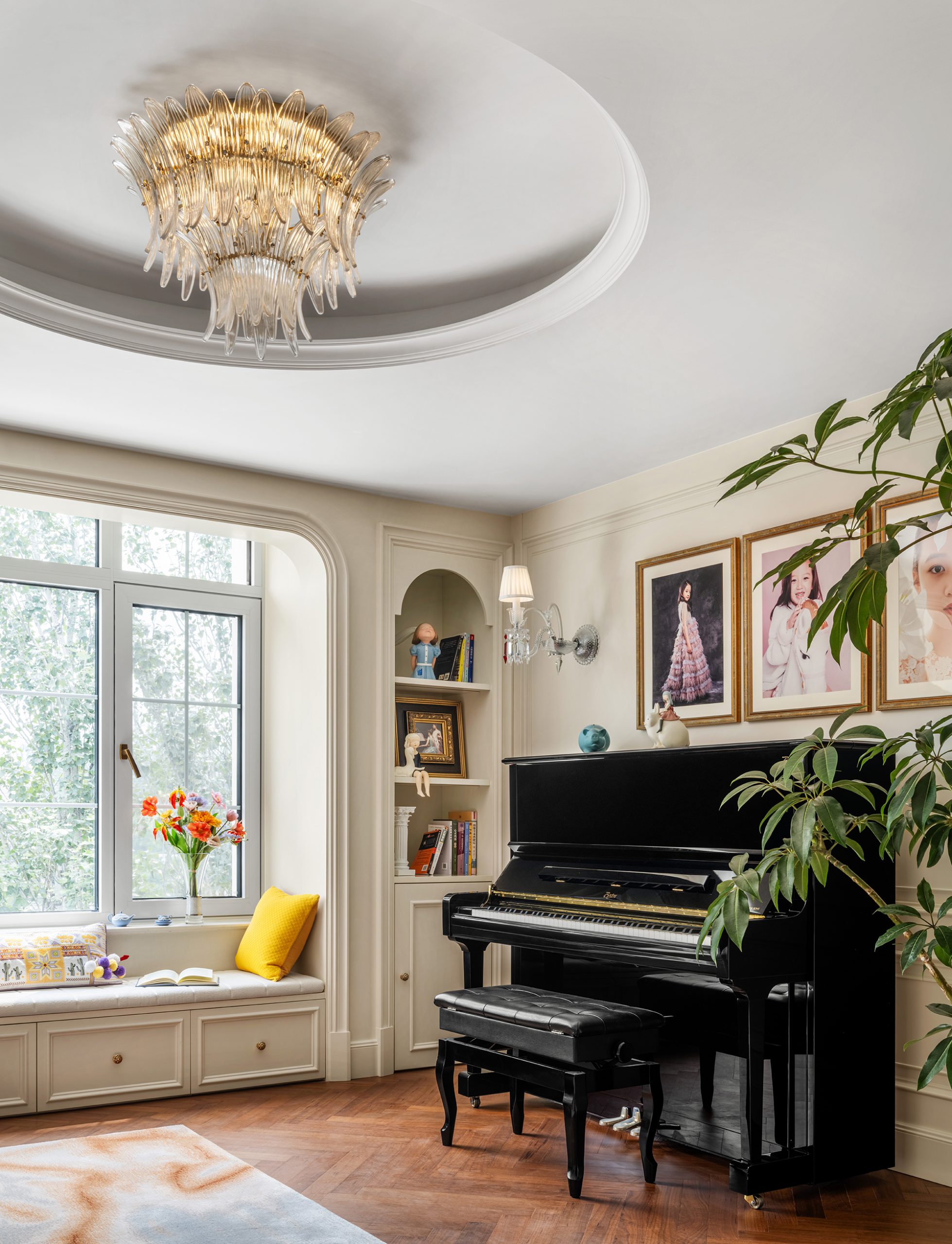 Connecting the two suites is a shared lounge that functions as both a piano practice area and a family gathering space. When music fills the room, it becomes an artistic sanctuary; at other times, it serves as a flexible zone for conversation and relaxation. Throughout the home, artefacts collected by Ms. Zhang during her travels, alongside the children’s certificates and awards, are carefully displayed. These items move beyond decoration, becoming emotional markers that enrich the living environment.