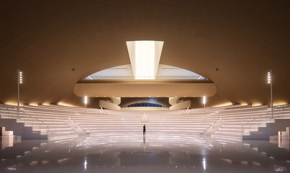 With the massive complex designed to house nine distinct functions – a library, an archives center, a concert hall, a cultural center, an art gallery, a science museum, a women’s and children’s activity center, an elderly activity center, and a youth activity center – Yunchao endeavoured to desegregate the experience in order to create a truly communal sense of being. Designed as three urban living rooms, each arch leads into a unique space, comprising a Knowledge Hall, a Performance Hall, and an Exhibition Hall.