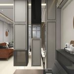 旧屋翻新,主要方正格局隔分为玄关与客厅,視線保有隐私之与增加收纳。入门的隔橱運用悬空设计,消弭壓迫感並使先天弱點轉化成為視覺焦點。整體空間立面讓木皮、石材、玻璃、皮革、鐵件等異材質交錯堆疊,引導視線連貫與延伸且增加空間層次。冷冽與溫潤並存,簡潔時尚、放鬆舒心。一家五口,各自擁有一番天地,生活機能完全的滿足,三代同堂,齊居共享天倫之樂。