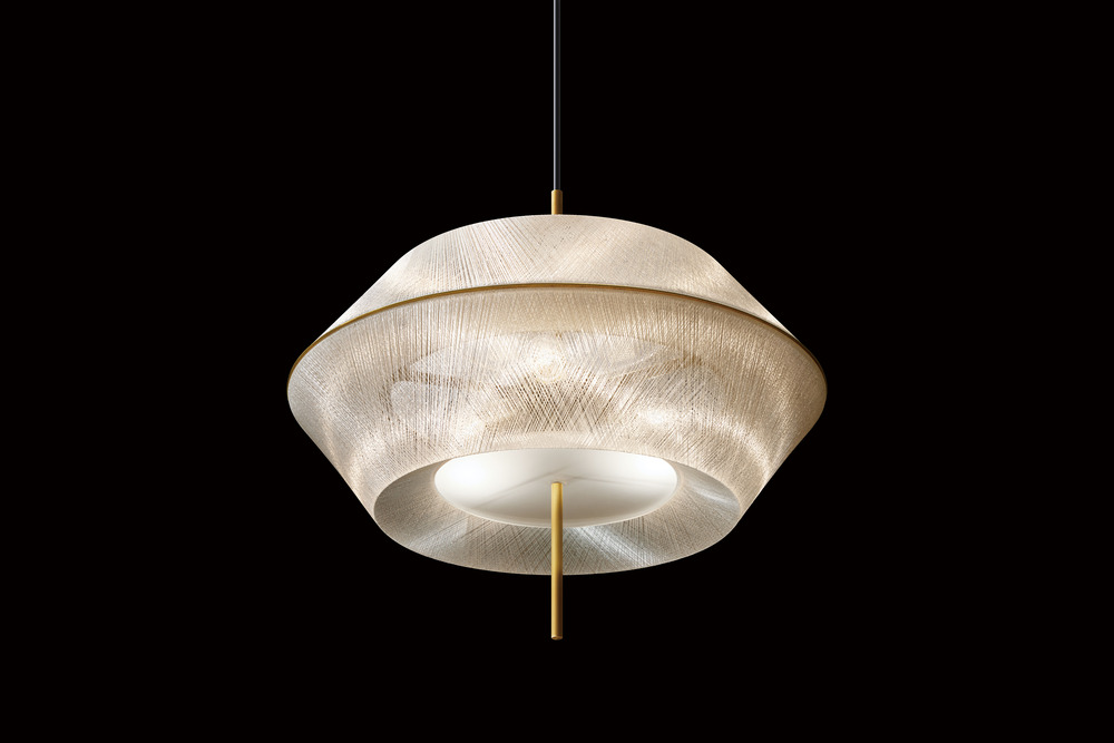 The Twilight collection takes inspiration from the serene beauty of the sky at dusk, when the sun sinks below the horizon and soft light lingers in the air. Each shade is meticulously crafted by winding fine glass fibre, a process that allows light from the internal source to scatter through every strand. This diffusion creates a shimmering brilliance reminiscent of a crystal chandelier, while also projecting a delicate lattice pattern onto the surrounding walls.